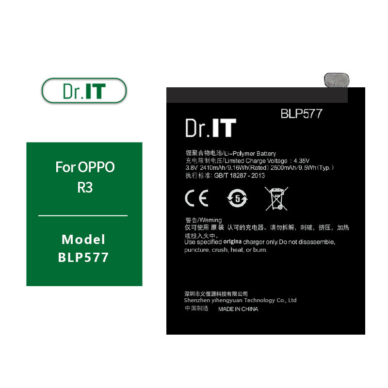 | Название продукта | Батарея 2500mAh 3.8V BLP577 полимера Li-иона горячей продажи первоначальная перезаряжаемые для Oppo R3/R7007/R7005/R7007 |