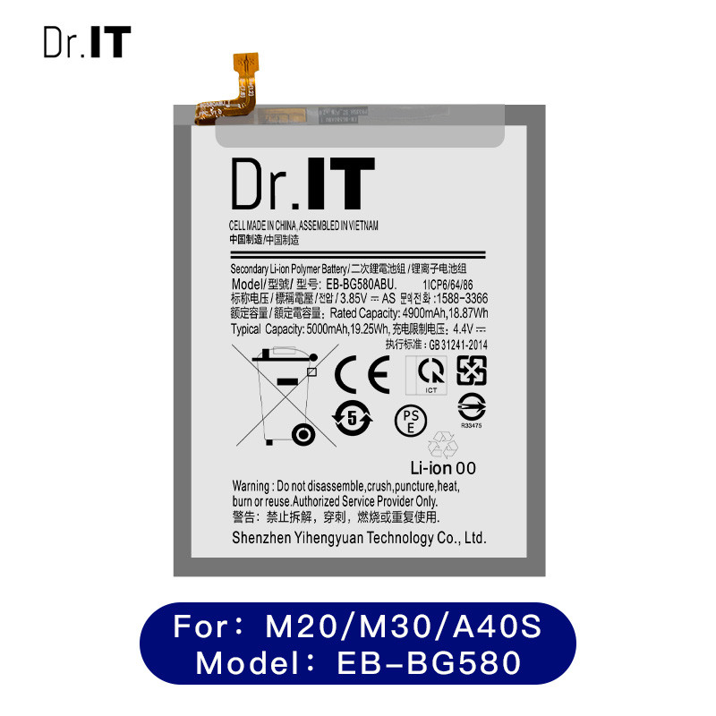 | Название продукта: | Батарея Samsung M20/M30/A40S | Номинальное напряжение: | 3.85V |