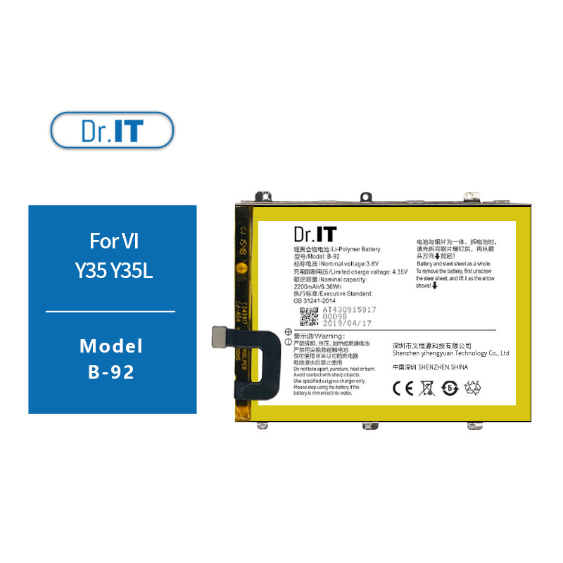 | Название продукта | Батарея нового OEM Д-р ИТ первоначальная стандартная для Vivo Y35 Y35L 2200mah b-92 |
